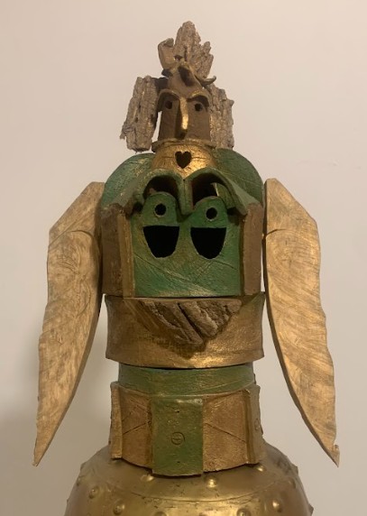 Een van die makende Almeerders was en is Paul Roelofs. Roelofs kiest ervoor, om ambivalentie in zijn werk te aanvaarden. Zo was zijn werk fictief, maar ook realistisch te noemen. Die ambiguïteit zie je ook in zijn werk terug. Je zou in eerste instantie denken aan die personages uit Nintendo-games, maar ook aan het werk van Koos Buster. Of aan de totems in oude tribes. Ook qua textuur is hij zoekende. De ene keer oogt kleiwerk glanzend, de andere keer oogt hij mat.