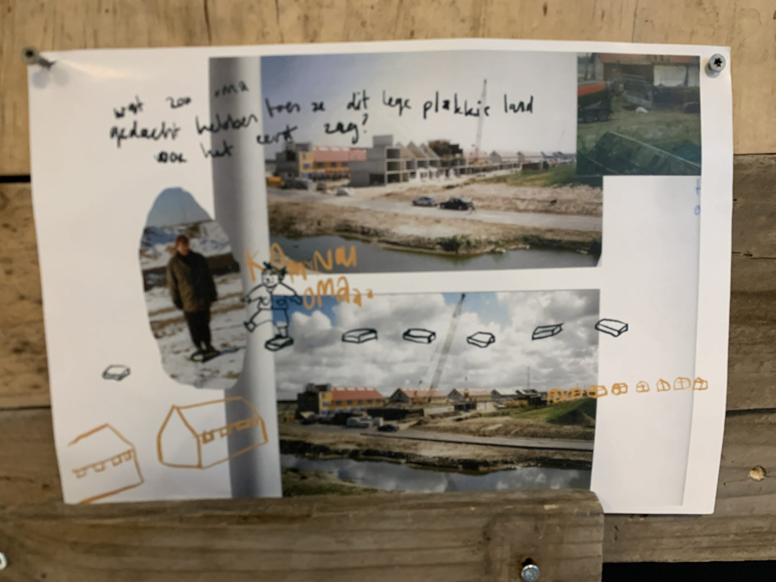 Dat de factor tijd een gegeven lijkt, beseffen ook twee andere kunstenaars. Tessa den Boef ziet vooral Almere vanuit haar eigen tijd – en die van de ouders. Als een stad in ontwikkeling, maar die – blijkens haar werk – altijd in ontwikkeling is. De maakster, die alumna in illustratie is, geeft met haar handschrift en haar kleine illustraties (zelfs kinderboektekeningen) een dagboekachtig karakter aan het werk. Maar wel met de helicopterview (of beter gezegd, het vogelperspectief). Hoe anders is dat bij Jet Leopold. Zij heeft letterlijk het kikkerperspectief aangenomen. De personen die op haar drieluik afgebeeld zijn, lijken plezier te hebben. De personen in de buitenlucht zelfs letterlijk. En dan moet er ook nog een flinke scheut oversaturatie over het drieluik heen.4